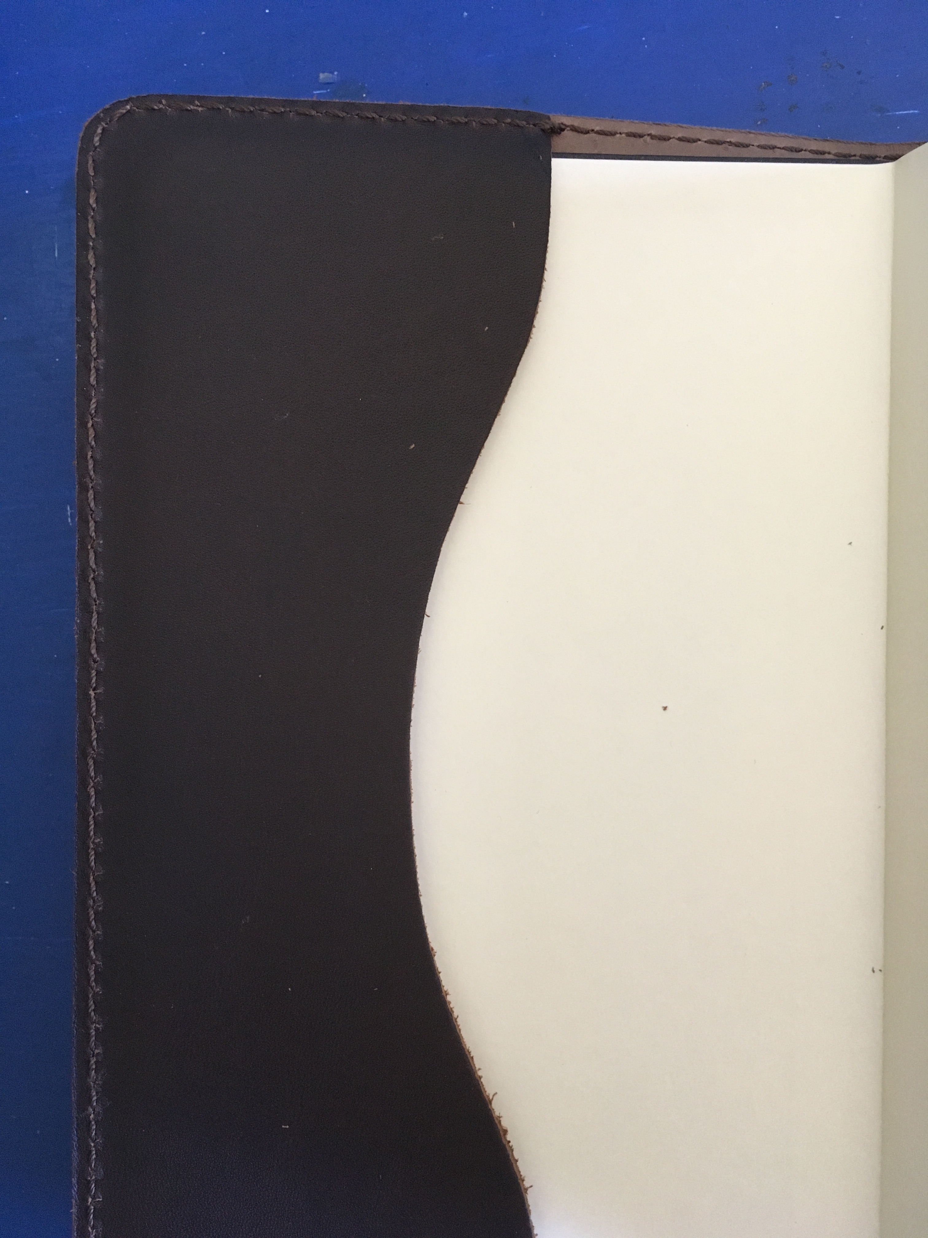 The leather is thick, consistenly a quality of Saddleback’s leather as compared to that of other companies. The quality is unflinching, but the leather cover feels a little too stiff for my tastes, even after some time of breaking it in.