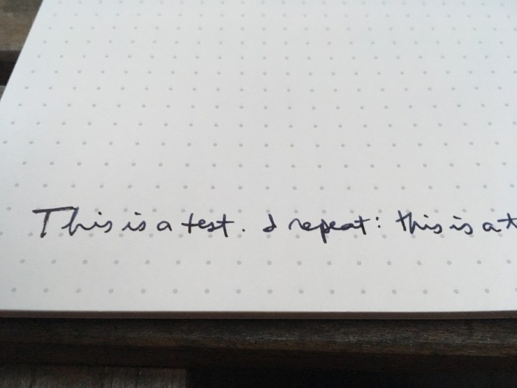 As far as bleed-through, the pad does pretty well. You could, in theory, use both sides of a page before discarding—the show-through is minimal enough. (The back sides are blank.)