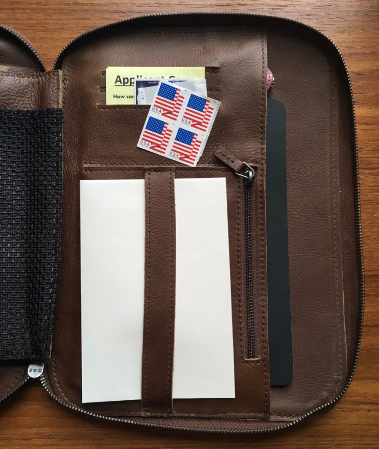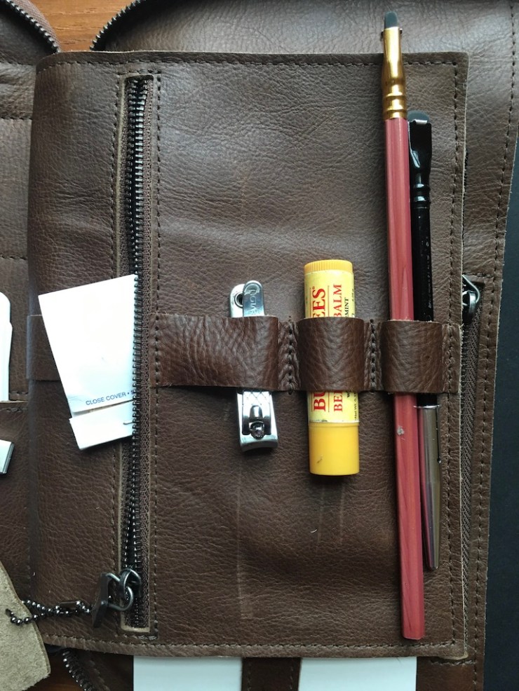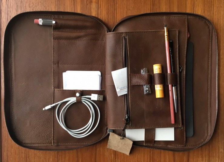 First thing I did when it arrived: I emptied out my pockets and satchel pouches and put my EDC into this suave, all-grown-up version of a Trapper Keeper.