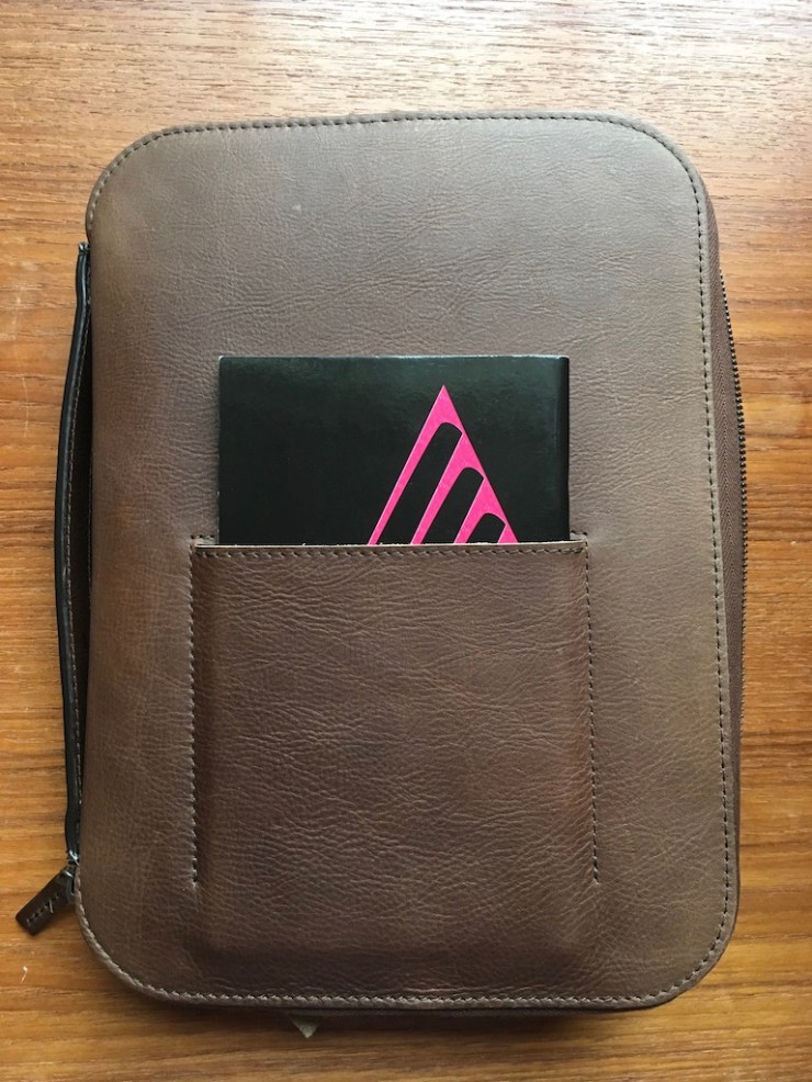 Where it really excels is in its versatility in helping the user stay organized… plus it looks and feels really good. The outer material is “100% Bovine Leather, sourced from Italy, Germany, and South America.” (I’ll try to find out more about the kind of leather and follow up in a future post.) UPDATE: The leather pictured above (“Rhum”) comes from South America. And it’s full grain!